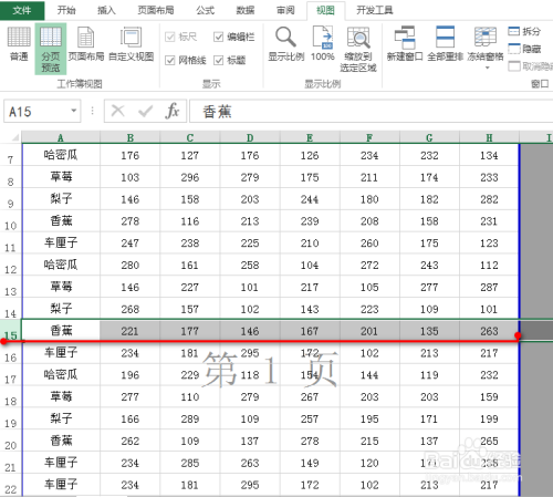 在“视图”选项卡下找到并点击“分页预览”,具体如图所示: