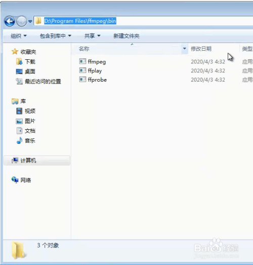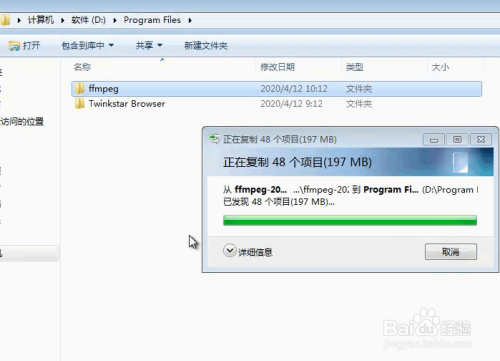 可以把ffmpeg文件夹复制到指定的文件夹D:\Program Files