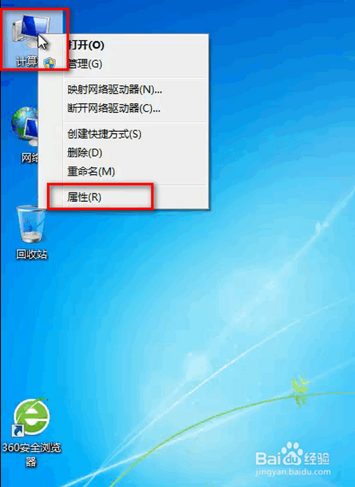 去桌面找到计较机图标,点击右键看属性。