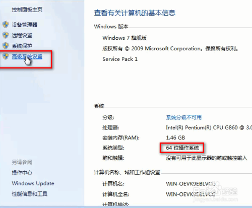 打开计较机属性后点击高级系统设置。