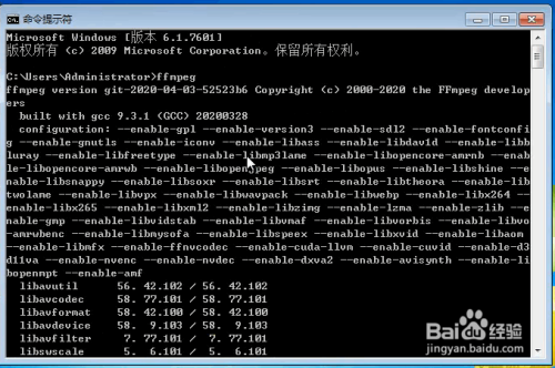 呈现如下提醒申明FFmpeg安装当作功了。