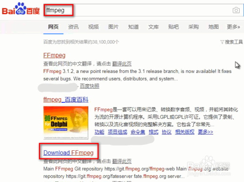 起首本身百度搜 FFmpeg