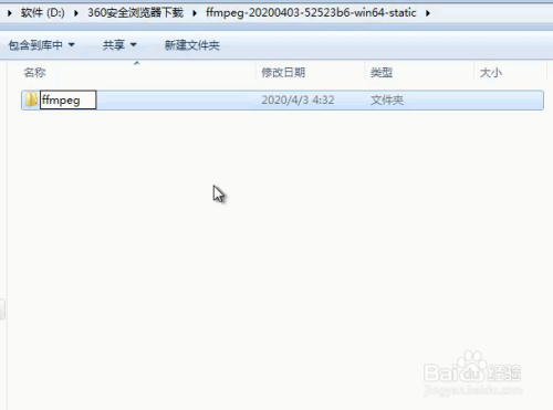 下载完毕可以解压开把文件夹名称点窜为ffmpeg