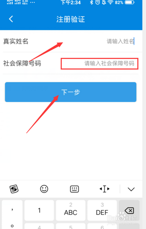 第三:进行注册输入【真实姓名】和【身份证】点击【下一步】。