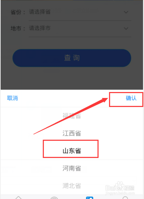 第三:点击【省份】选择本身地点地域点击右上角的【确定】。