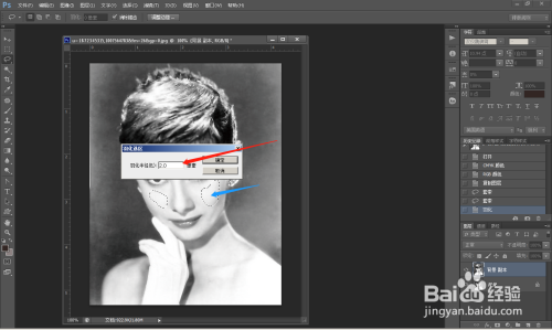 第四步:对人物五官由内标的目的外依次做选区。成仙:2像素;看图解