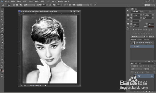 第一步; 运行PS 进入本家儿界面,导入一张口角照片,看图
