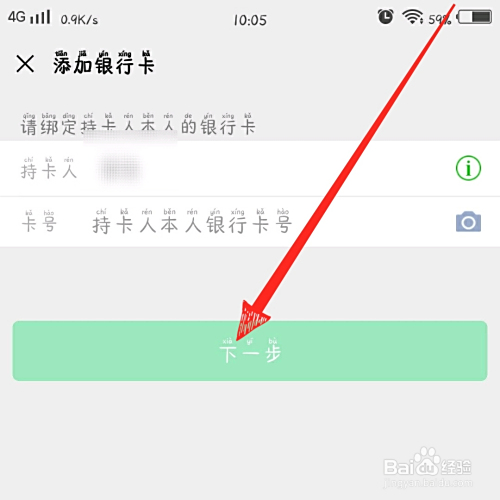 6.最后如下图所示,完美银行卡信息,点击下一步即可添加。