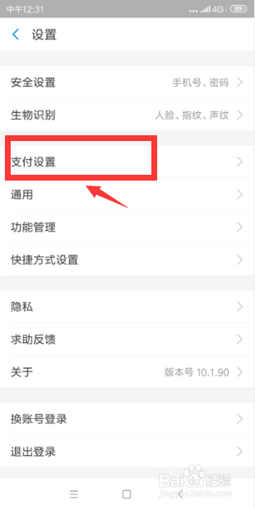 然后,在设置界面,勾选第三项“支付设置”,点击进入。
