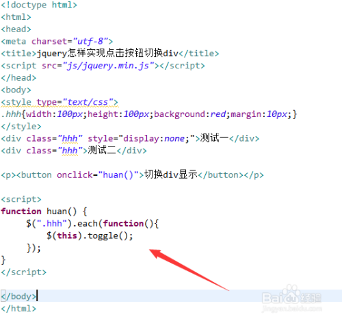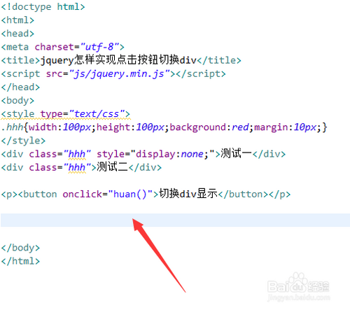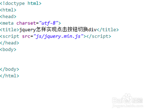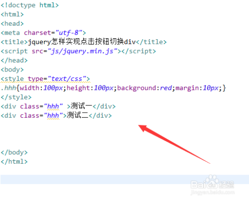 新建一个html文件,定名为test.html,用于讲解jquery如何实现点击按钮切换div。