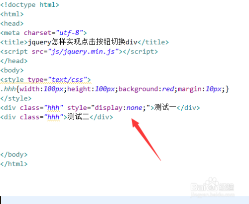 在test.html文件内,第一个div模块利用display属性设置其埋没不成见,即display设置为none。