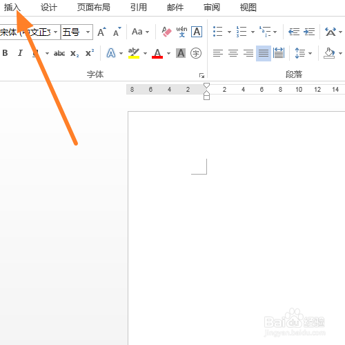 起首打开一个word文档,鼠标定位到要插入表格的位置。然后点击上方的插入。