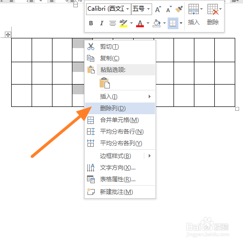 要删除表格的行或列,可以在表格的上方或者左侧,点击一下鼠标左键选中列,再点击右键,选择【删除列】即可。