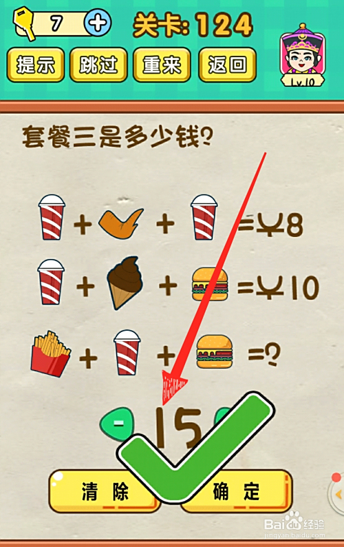 然后输入套餐三的金额(套餐三的金额在前几关呈现过)。