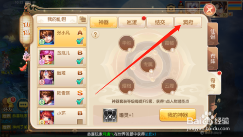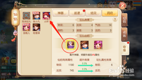 更换驻扎洞府的仙侣,获取更适合自己的属性加成