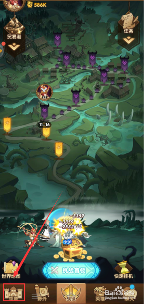 第二:进入游戏本家儿页点击左下角【领地】按钮选项。