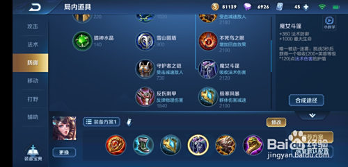 第四件装备,魔女大氅,增添神通防御、血量,被动增添护盾。