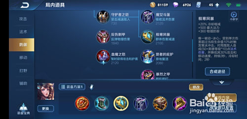 第三件装备,极北风暴,增添冷却缩减、最大法力、物理防御,独一被动,增添神通危险、降低进犯、移速