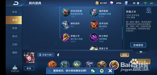 第六件装备,梦魇之牙或者新生甲,看环境选择,如对面有回血吸血英雄,可选择梦魇之牙,不然选择新生甲