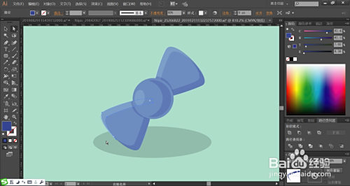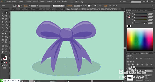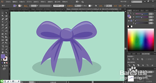 利用紫色填充蝴蝶结的本家儿体路径,再用紫色填充暗光路径并设置当作正片叠底的模式。