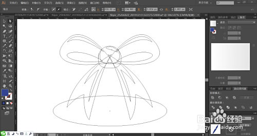 利用钢笔画出蝴蝶结的根基轮廓,重点描画蝴蝶结上面的暗光与亮光的路径,再用圆形画出蝴蝶结的暗影路径。