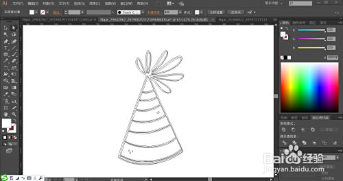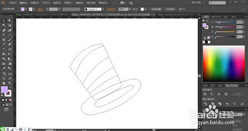利用钢笔画出魔术帽的根基轮廓,再用圆形画出魔术帽的下方暗光圆形,魔术帽上面的条纹也用钢笔一一绘制出来。