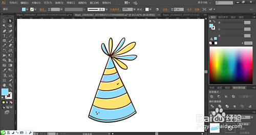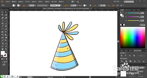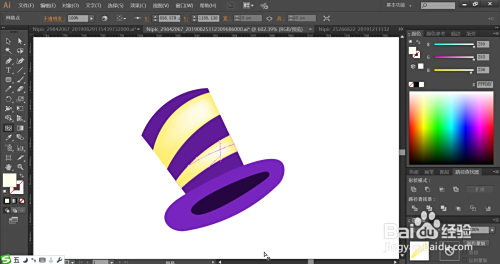 利用黄色填充魔术帽上面的条纹,再用网格东西点击一下条纹让其呈现黄色的渐变结果。