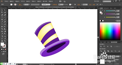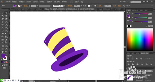 利用紫色填充帽子的本家儿体,再用暗紫色填充魔术帽的下方圆形暗光区域。