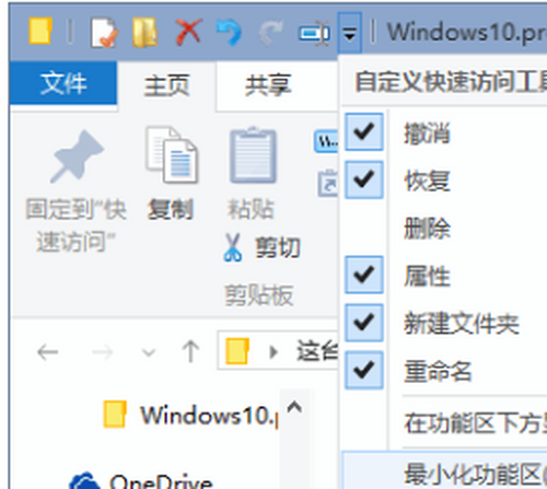 默认环境下,快速拜候东西栏只显示“属性”和“新建文件夹”按钮,点击右侧的下拉箭头,在弹出的下拉菜单中,可以再选择“裁撤、恢复、删除、重定名”等功能按钮显示在快速拜候东西栏中。如图: