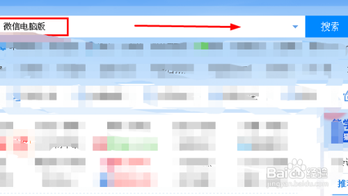打开浏览器,在搜刮框内输入“微信电脑版”,搜刮。
