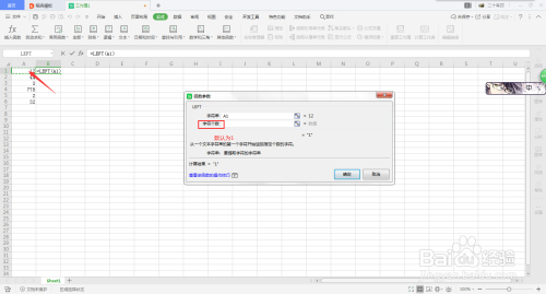 字符串这里单击要提取的单位格,提取的位数默认是1
