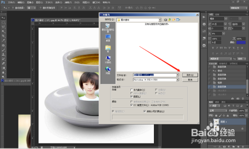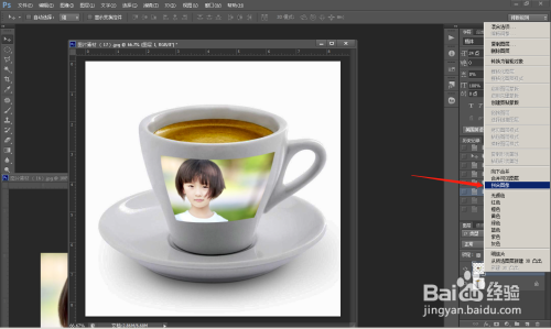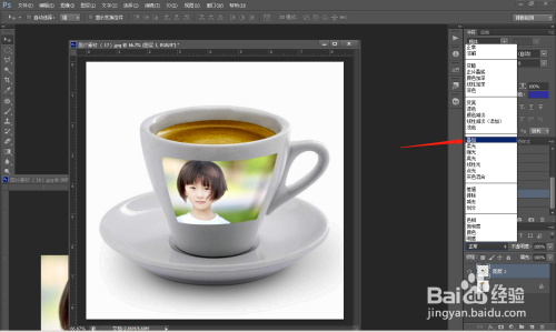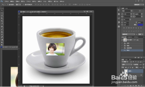 第三步: 将人物照片直接拖移到茶杯上面,看图