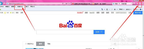 打开IE浏览器,在本家儿页中,选择右侧的保藏图标或者打开保藏夹选项栏,如图