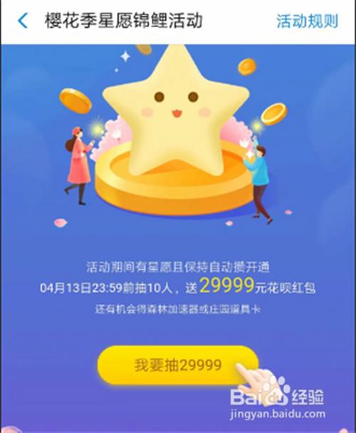 打开蚂蚁星愿锦鲤勾当法则,查看勾当时候,弄法和奖品。