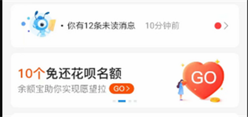 登录支付宝首页,找到余额宝助力实现愿望,点击进入。