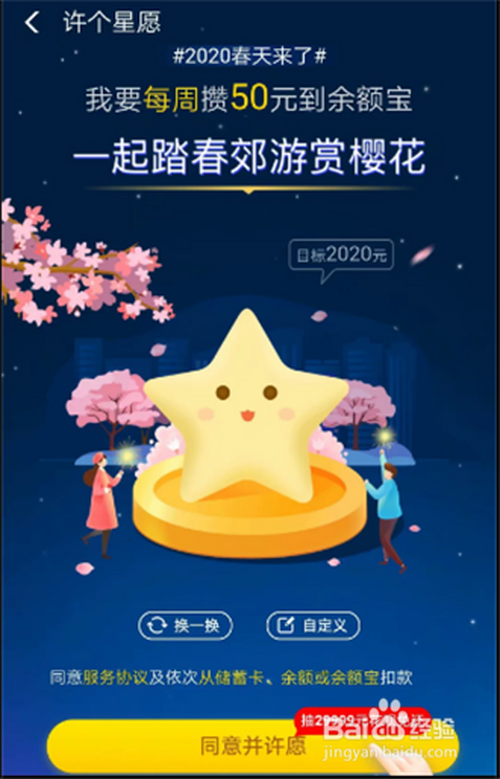 设置心愿方针,输入攒入金额,点击赞成并许愿。