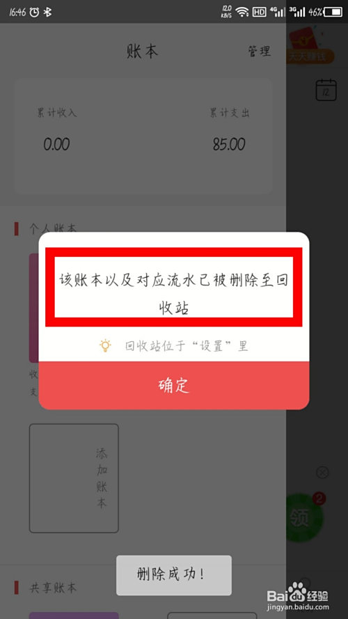 然后账本就被删除了,能看到已被删除的提醒。如图所示