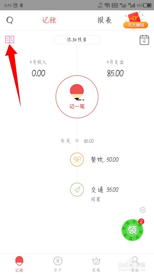 打开有鱼记账后,点击左上的账本图标。如图所示