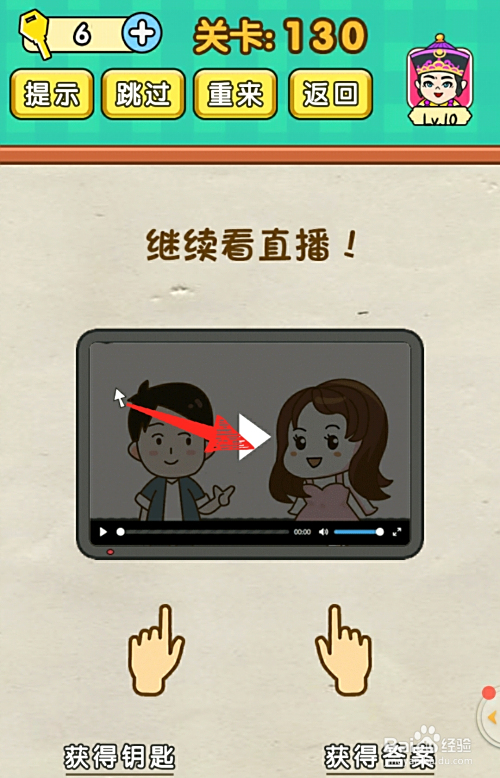5.最后成果如下图所示,鼠标点击暂停按钮继续播放直播即可过关。