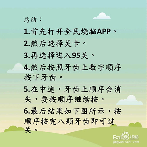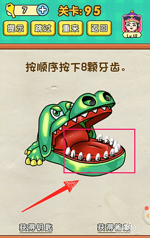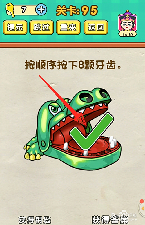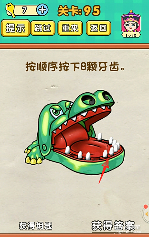 6.最后成果如下图所示,按照挨次按完八颗牙齿即可过关。