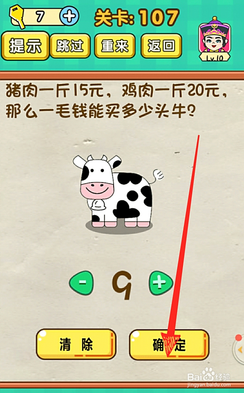 5.最后成果如下图所示,输入谜底九点击确定即可过关6.。