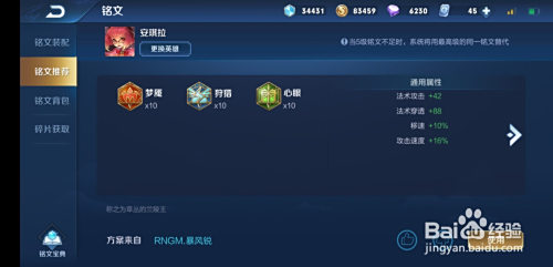 铭文保举,梦魇*10、打猎*10、心眼*10,增添法攻、法穿、移速、攻速。