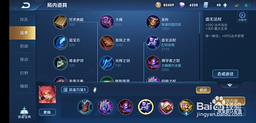 第四件装备,虚无法杖,增添法攻、血量,被动增添神通穿透,打坦克专用。