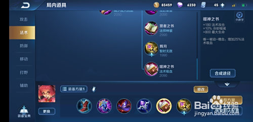 第五件装备,噬神之书,增添神通进犯、冷却缩减、血量,被动增添神通吸血结果,法师焦点装备,大大提高保存能力。