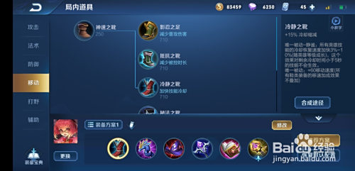 第一件装备,沉着之靴,增添移速、冷却缩减,大幅度晋升安其拉前期技术利用频率。