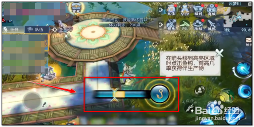 4.垂钓时当箭头移动到高亮区点击鱼钩(水晶钓竿),获得鱼的几率更大