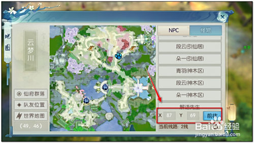 2.来到云梦川,在地图输入坐标(87,69)前去垂钓位置