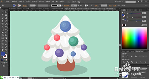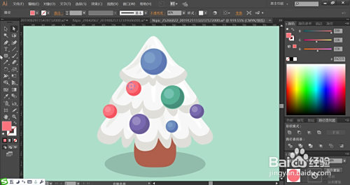 最后,我们用绿色、蓝色、红色别离填充树上的球形礼品的路径,再用滤色模式的相似色填充亮光,利用正片叠底模式的相似色填充暗光,完当作白色的小圣诞树图片设计。
