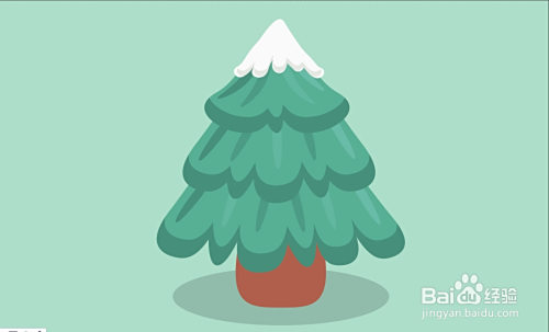 利用钢笔画出小圣诞树的本家儿体路径,再画出它的树叶子与顶端的雪花路径,接着,我们画出树叶子上面的亮光圆弧与暗光圆弧,再画出小圣诞树下方的暗影圆形。