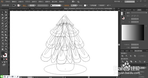 利用钢笔继续画出别的一个挂满圆球礼品的圣诞树,再把叶片上面的暗光一一绘制出来,最后,我们绘制出圆球礼品上面的亮光与暗光路径。
